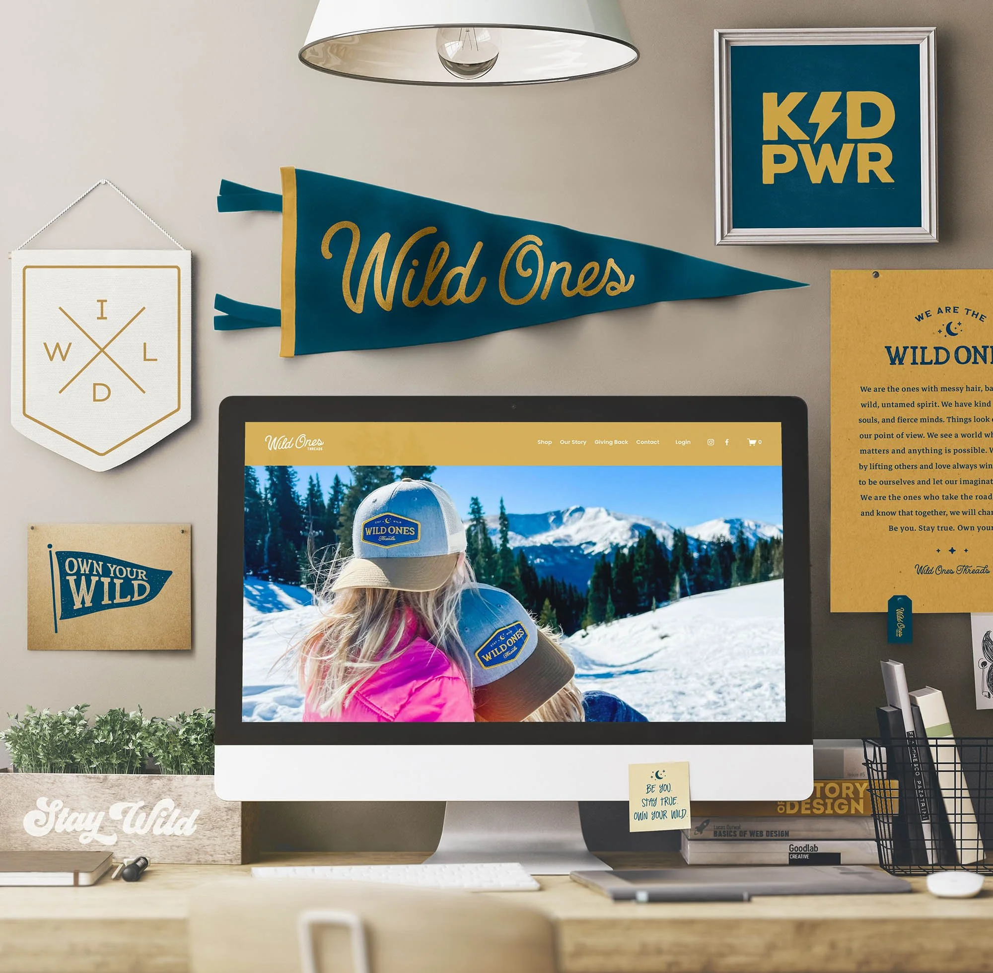 The brand design is a combination of whimsical hand-drawn and script fonts paired with a nature-inspired color palette and topped off with a moon-and-stars icon that reinforces staying wild and howling at the moon. The result is a brand design as wild and free as the kids it inspires.